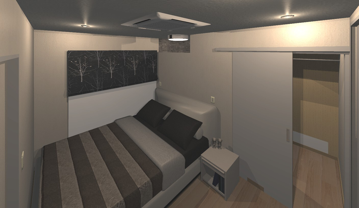 寝室ではプロジェクターで鑑賞する大画面映画。WICの奥には隠れ家的書斎。